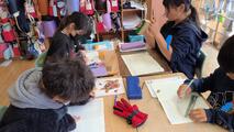 4年生の図工は、『カクカク板を組み合わせたら』の学習です。 のこぎりで切った板を組み合わせて、自分にとって「使って楽しいもの」を作り上げていく活動です。 今日はまず、材料となる板をのこぎりでいろいろな形に切り分けました。最初は「刃を動かすのが難しい!」「曲がっちゃいそう」と大変そうな子どもたちでしたが、授業が進むにつれてどんどんコツを掴んでいったようです。 足でしっかり板を押さえ、リズムよくのこぎりを動かす姿は、まるで小さな職人さんのようでした! 無事に切り終えた板を並べてみると、カクカクした形、細長い形、不思議な多角形……。これからどんな作品に仕上がっていくのか、今から完成が待ち遠しいですね!