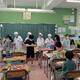 校舎に食欲をそそる良い香りが漂い、いよいよ今日から給食が始まりました。 新しい学年になり、期待と緊張が入り混じるなかで過ごした三日間でしたが、お昼時に4年生の教室を覗いてみると、そこにはとても頼もしい姿がありました。 「さあ、準備を始めましょう」という先生の合図で、テキパキと準備に取り掛かる子供たち。驚いたのは、その静かさです。おしゃべりをすることなく、落ち着いて自分の役割を果たしたり、静かに列に並んだりする姿に、「流石は高学年の仲間入りをした4年生だな」と感心させられました。 準備が整い、みんなで元気よく「いただきます!」。教室にはパッと明るい笑顔が広がり、久しぶりの給食をどの子も美味しそうに頬張っていました。 しっかり食べて、心も体もぐんぐん大きくなってほしいと思います。