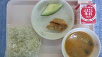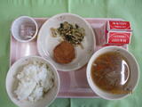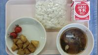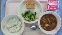 今日の献立は、カレーライス、牛乳、ブロッコリー、手作りイチゴケーキです。