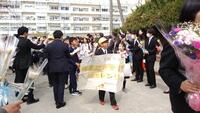 式の後には、5年生、保護者、職員が校庭に並び、卒業生の門出をお祝い。