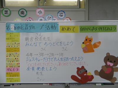 7人の新しいメンバーを迎え、2学期最初の吃音グループ活動を行いました。今回のめあては、『自分から声をかけてみよう』でした。新メンバーの自己紹介の後、全員で詩の朗読をしました。スリーヒントクイズの発表は、それぞれが工夫をしていました。