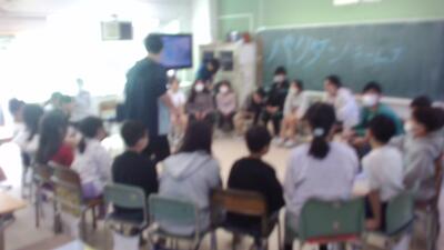 ある教室をのぞいてみると、みんなで「ばくだんゲーム」を楽しんでいました。6年生が低学年の子にボールの回し方や座り方をやさしく教える姿がとても印象的で、音楽に合わせてクラス全体が大きな盛り上がりを見せていました。