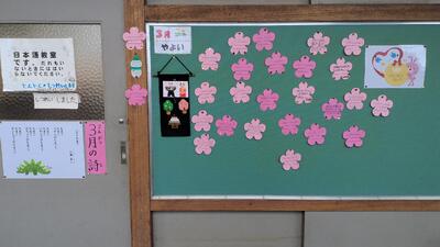 日本語教室 投稿: 芝犬ミナミちゃん (17:00) カテゴリー: 今日の出来事 もうすぐ3学期が終わります。今年度の日本語教室は、3月17日(火)までです。 1年間、コツコツと努力を積み重ねてきた子どもたちは、「ひらがな、カタカナ、漢字が書けるようになりました。」「日本語を読むことをがんばりました。」「友達とたくさん話せるようになりました。」「今月の詩を見ないで言えるようになりました。」など、自分のできるようになったことや頑張ったことを書いていました。 新しい学年になる前に、日本語教室で学習した内容を復習し、これからもあきらめずに努力を積み重ねていきましょう。